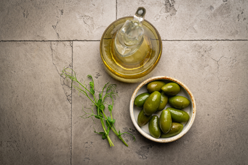 지중해식 식단은 대부분의 요리에 올리브 오일을 사용한다. 포화 지방이 적은 올리브 오일은 건강한 지중해 식단을 대표하는 식품으로 널리 알려져 있다.